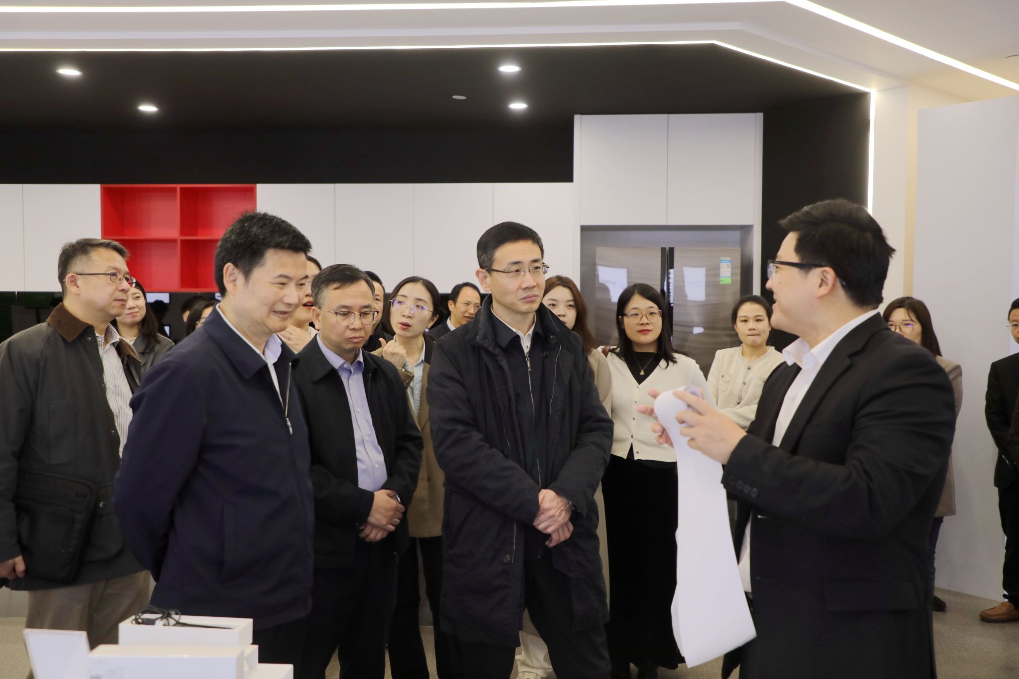 11月7日下午,科技部二司副司长曹宁一行16人莅临嘉兴大学G60研究院调研教育科技人才一体化发展情况。纳米技术研究院执行院长闫建华为曹宁一行介绍了研发的产品。